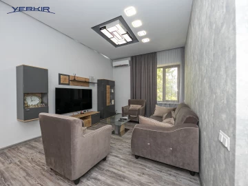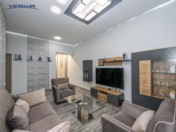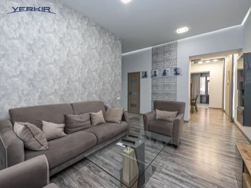 A 3-room apartment is for sale in the center, on Khanjyan street. The apartment is located on the 3rd floor of a 5-story stone building. The total area of this comfortable and bright apartment, built according to Stalin`s project, is 90 sq.m. It has 2 balconies and major repairs. It is sold together with kitchen furniture.