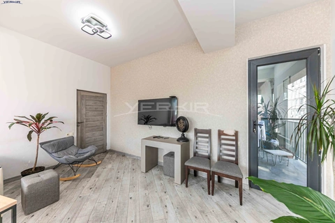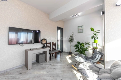 A 2-room apartment is for sale on the 12th floor of a 13-storey newly built building. The apartment has been fully renovated. Heating and cooling systems are individual. There is an open balcony with a beautiful view. The apartment is being sold partially furnished.