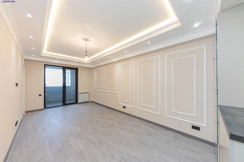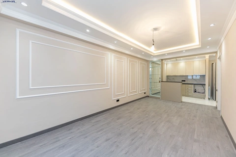 A 3-room apartment is for sale, located on the 4th floor of a 12-story newly built building. The apartment has been fully renovated and is equipped with heating and cooling systems. It is sold fully furnished and with appliances.