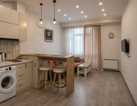 Агентство недвижимости «Еркир» предлагает 1-а комнатная квартира, перепланированная в 2-х комнатную на улице Гюльбенкянa. Она находится на 6-ом этаже 9-этажного панельного здания. Общая площадь квартиры составляет 45 кв.м. Имеется хозяйственный балкон.